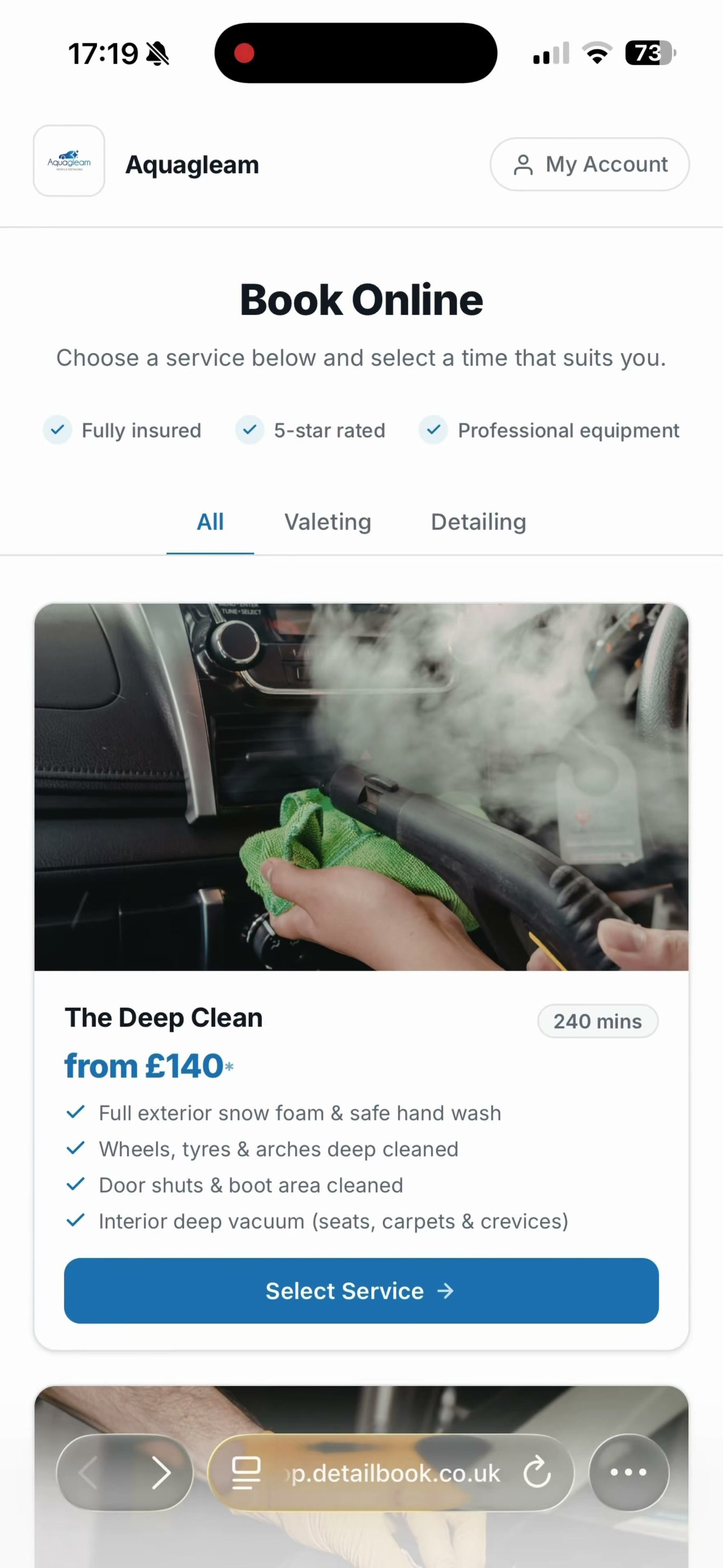 Quick wash? Instant booking. Full correction? Custom quote.